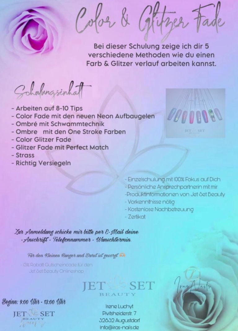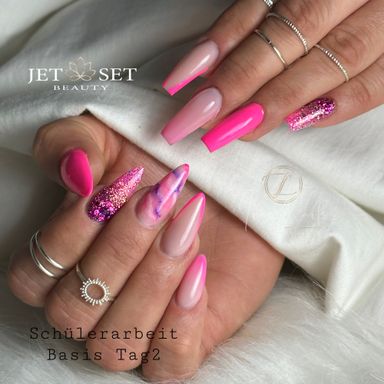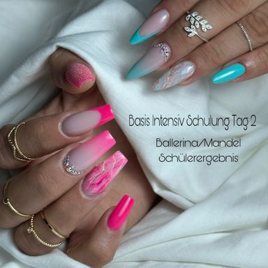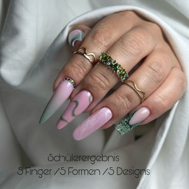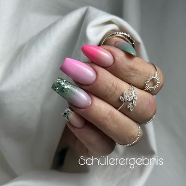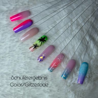 Bei dieser Schulung zeige ich dir 5 verschiedene Methoden wie du einen Farb, Glitzer verlauf, Babyboomer und verschiedene Arten von French arbeiten kannst.